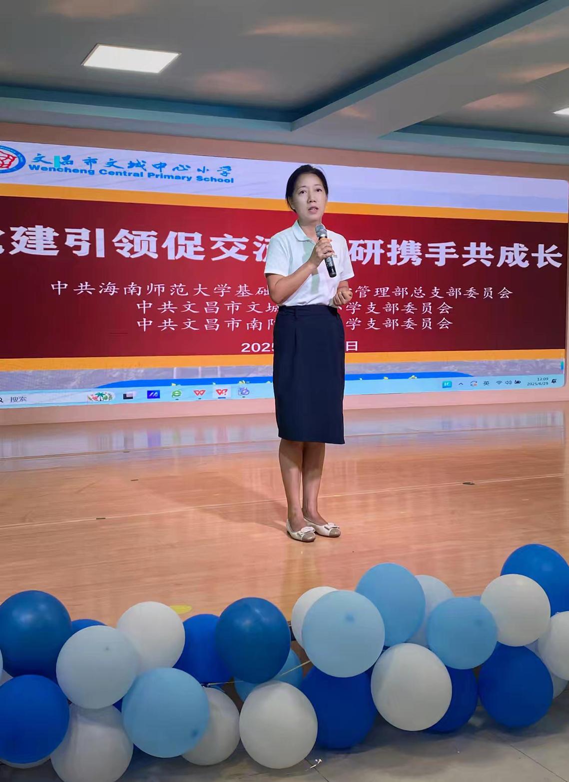 海南师范大学基础教育办学管理部组织竞彩足球 和海师附幼的学科骨干教师在文城中心学校开展党建引领教研活动。