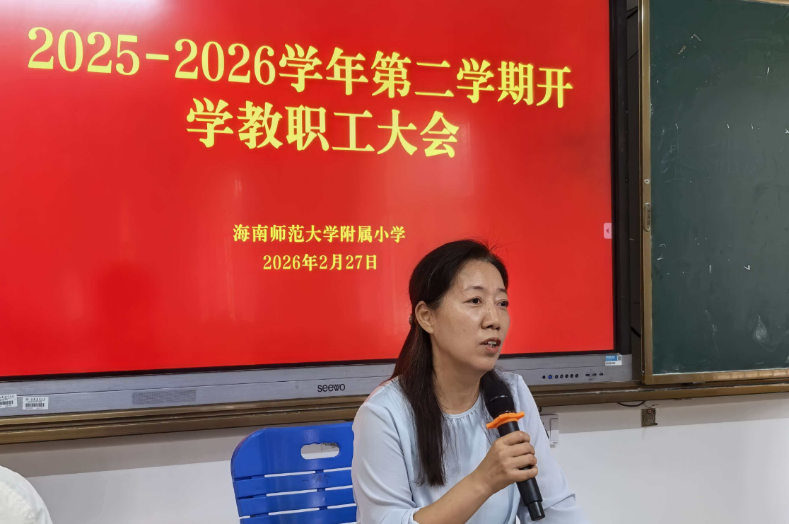 为贯彻落实上级教育工作会议精神,全面部署新学期各项工作,确保竞彩足球app安全、平稳、有序开学,2月27日下午,竞彩足球app全体教职工齐聚一堂,参加2025—2026学年度第二学期开学教职工大会,本次会议由王海燕主任主持。